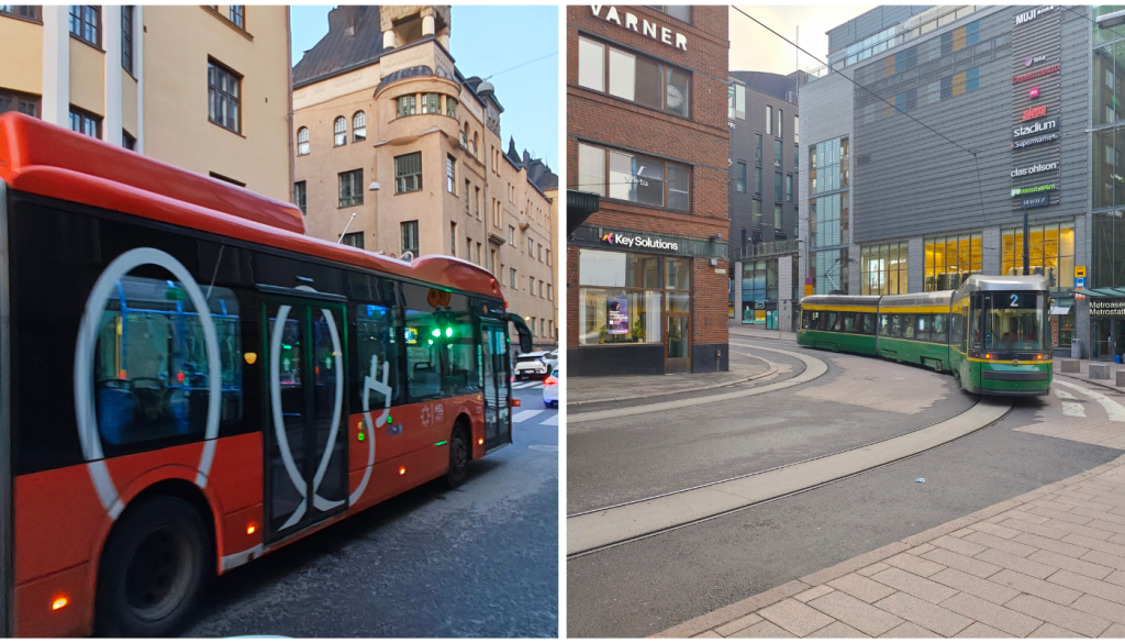 Јавниот транспорт во Хелсинки е вистинска симфонија на тивка, електрична ефикасност. Трамваите веќе со децении се на струја, лизгајќи се низ улиците речиси бесшумно. Градските автобуси - и тие се веќе електрични.